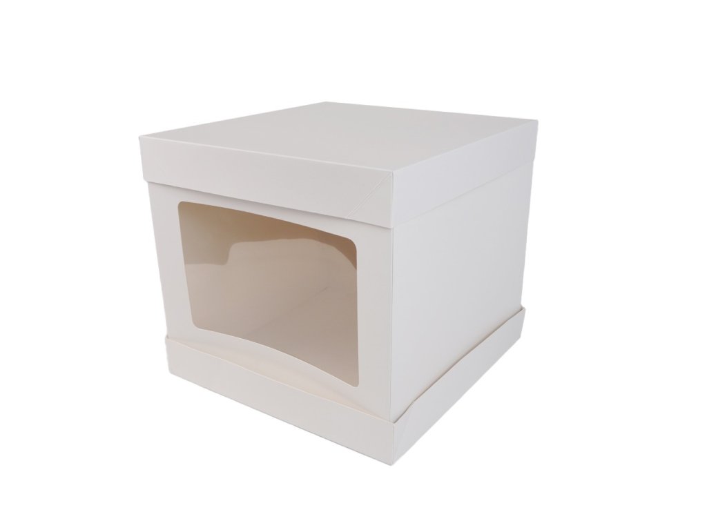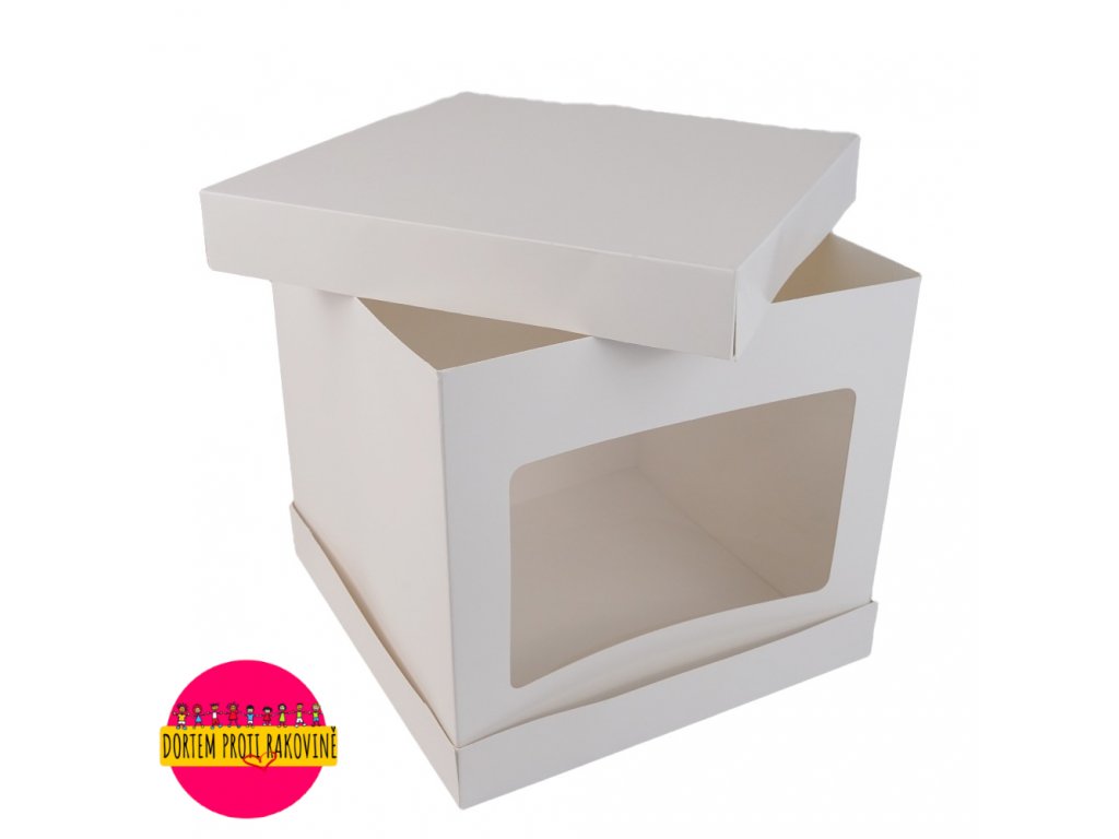 Cake star dortová krabice bílá s okénkem (33 x 33 x 30 cm)