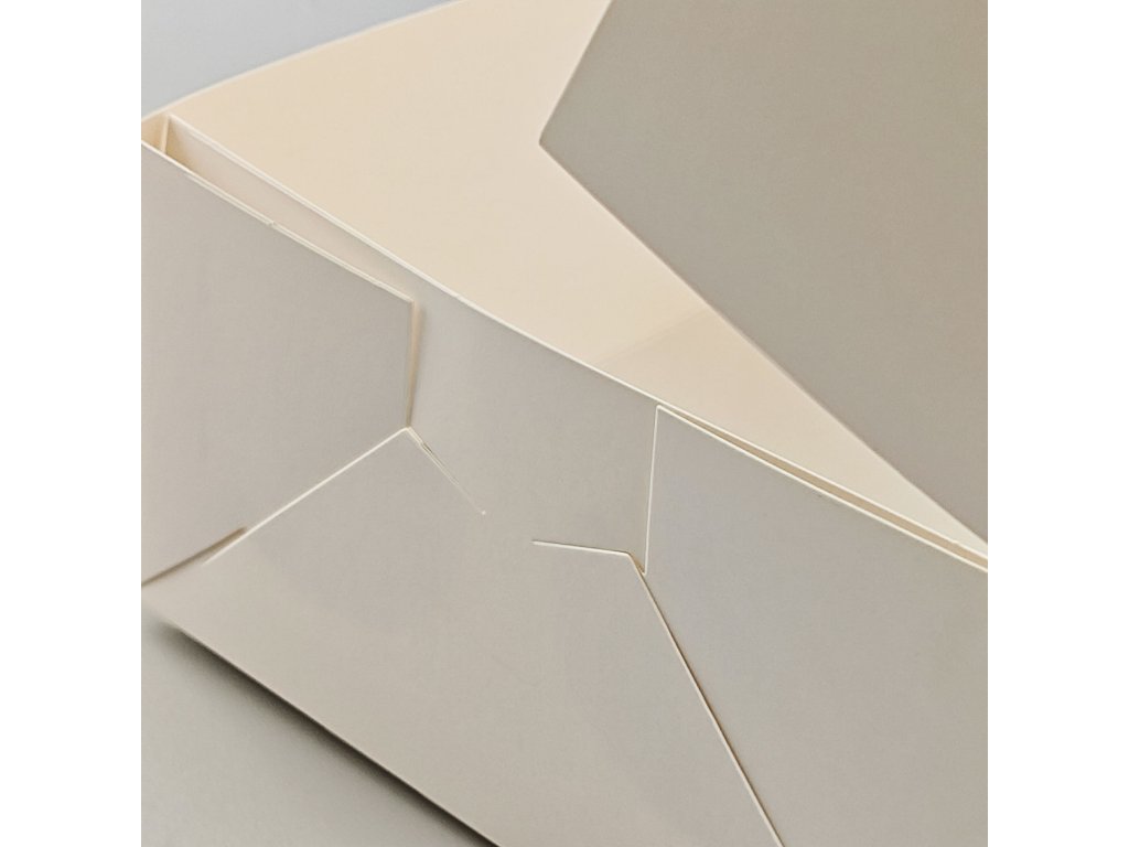 Krabice je vyrobena z kvalitního pevného kartonu, který drží tvar a zároveň působí čistě a profesionálně. Snadno se skládá a uzavírá.