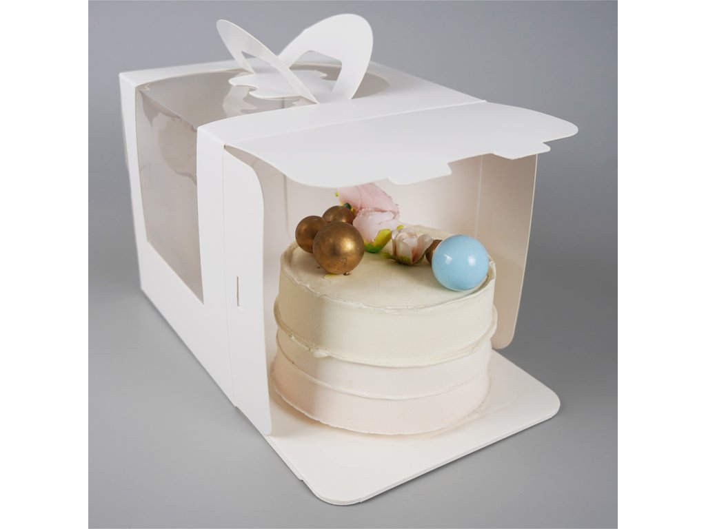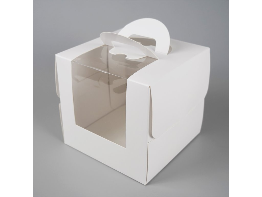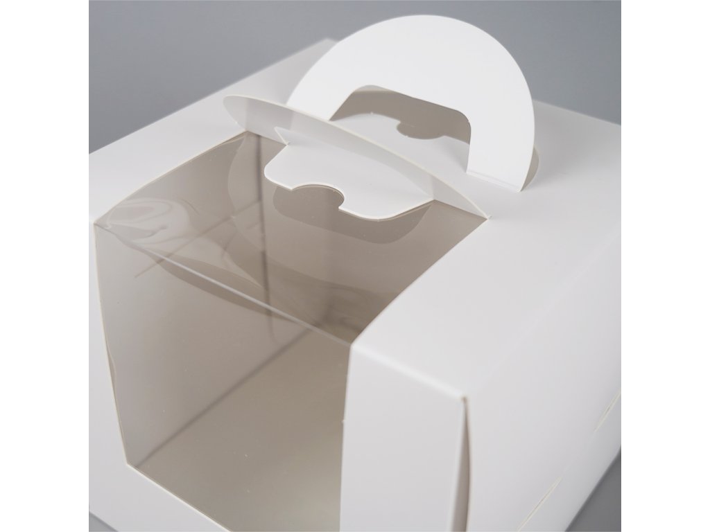 Cake star dortová krabice LILI bílá s okénkem a úchytem 16 x 16 x 15cm