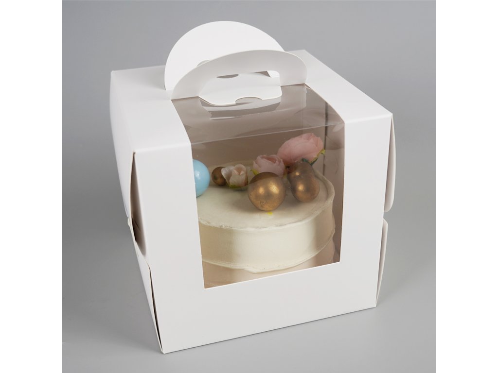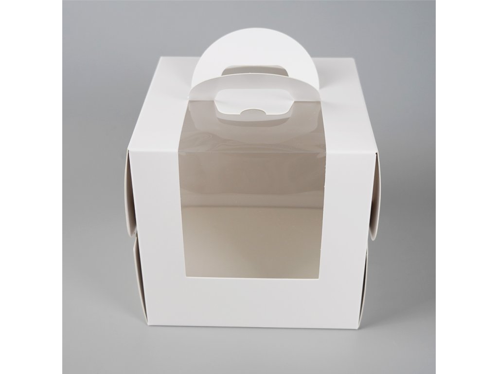 Cake star dortová krabice bílá s okénkem a úchytem