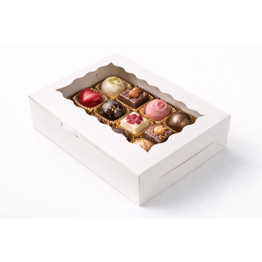 Cake star krabička bílá s okénkem.