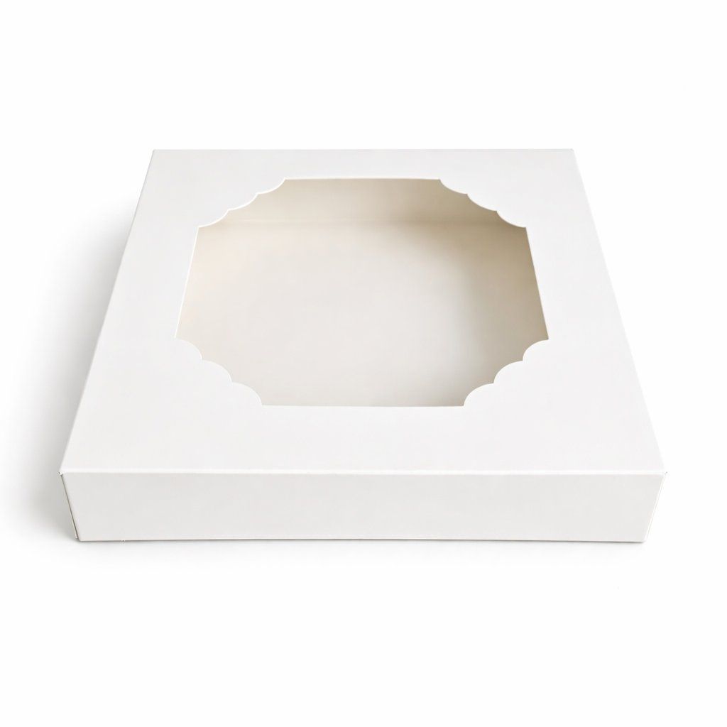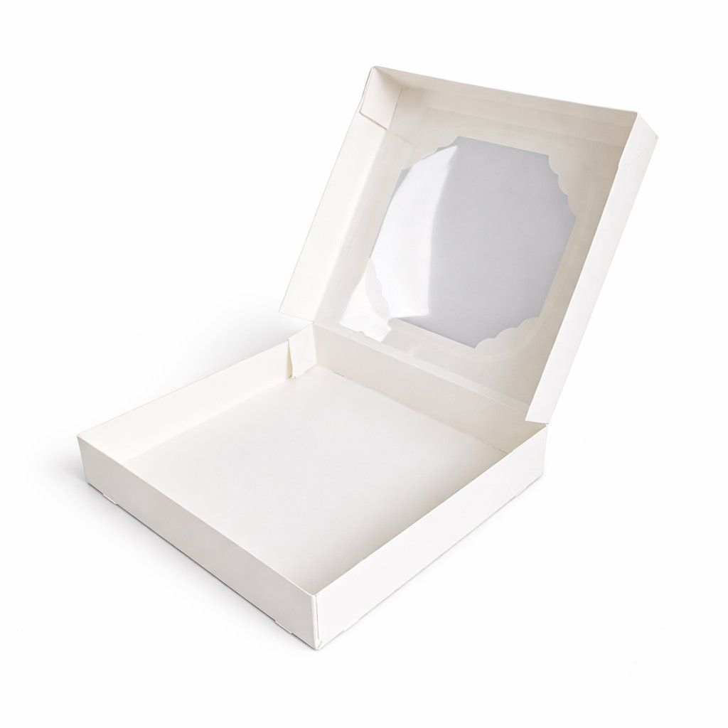 Cake star krabička bílá s okénkem nízka 20x20x3,5cm
