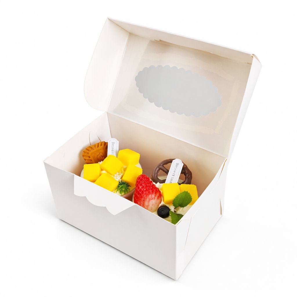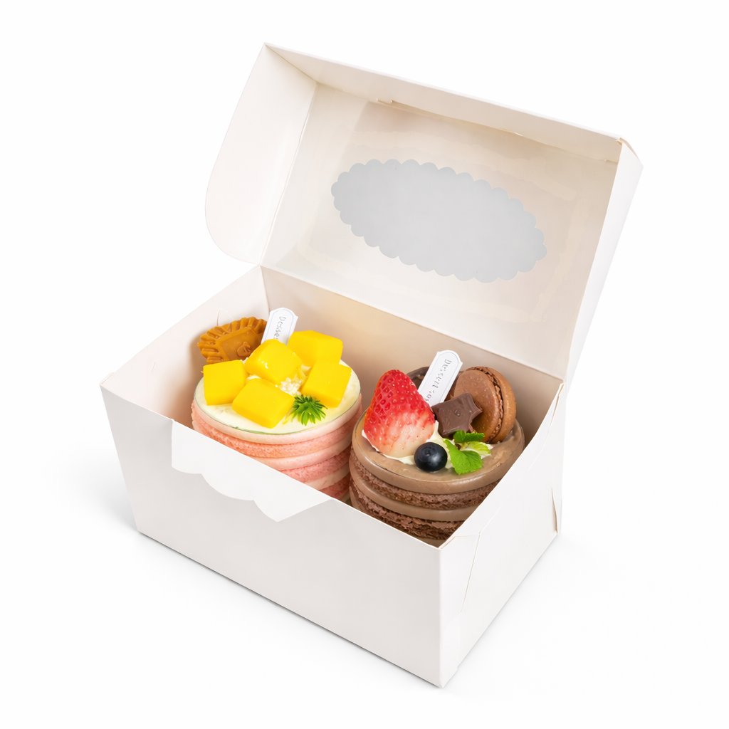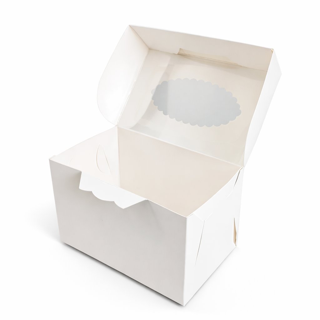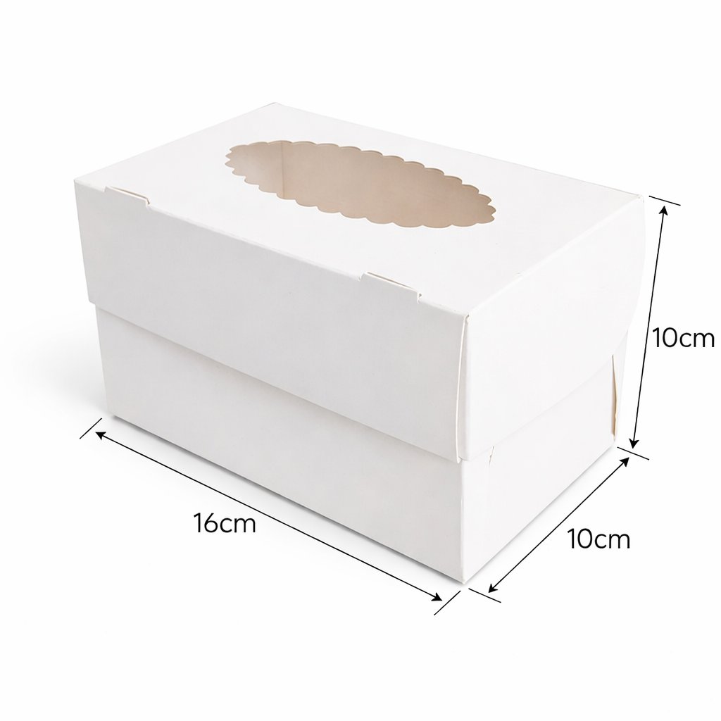 Praktická a stylová krabička ideální pro balení dezertů, jako jsou dorty, cupcakes, makronky nebo jiné sladké dobroty.