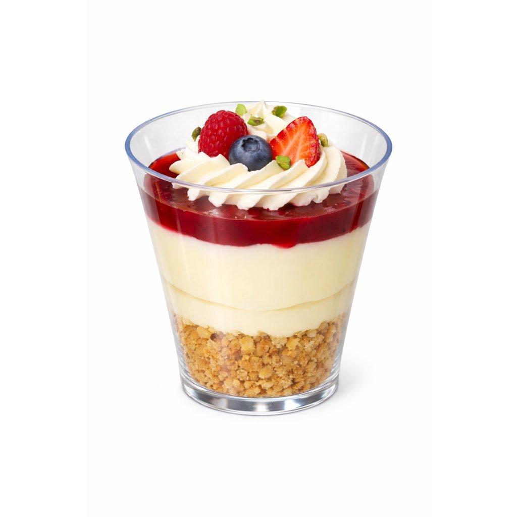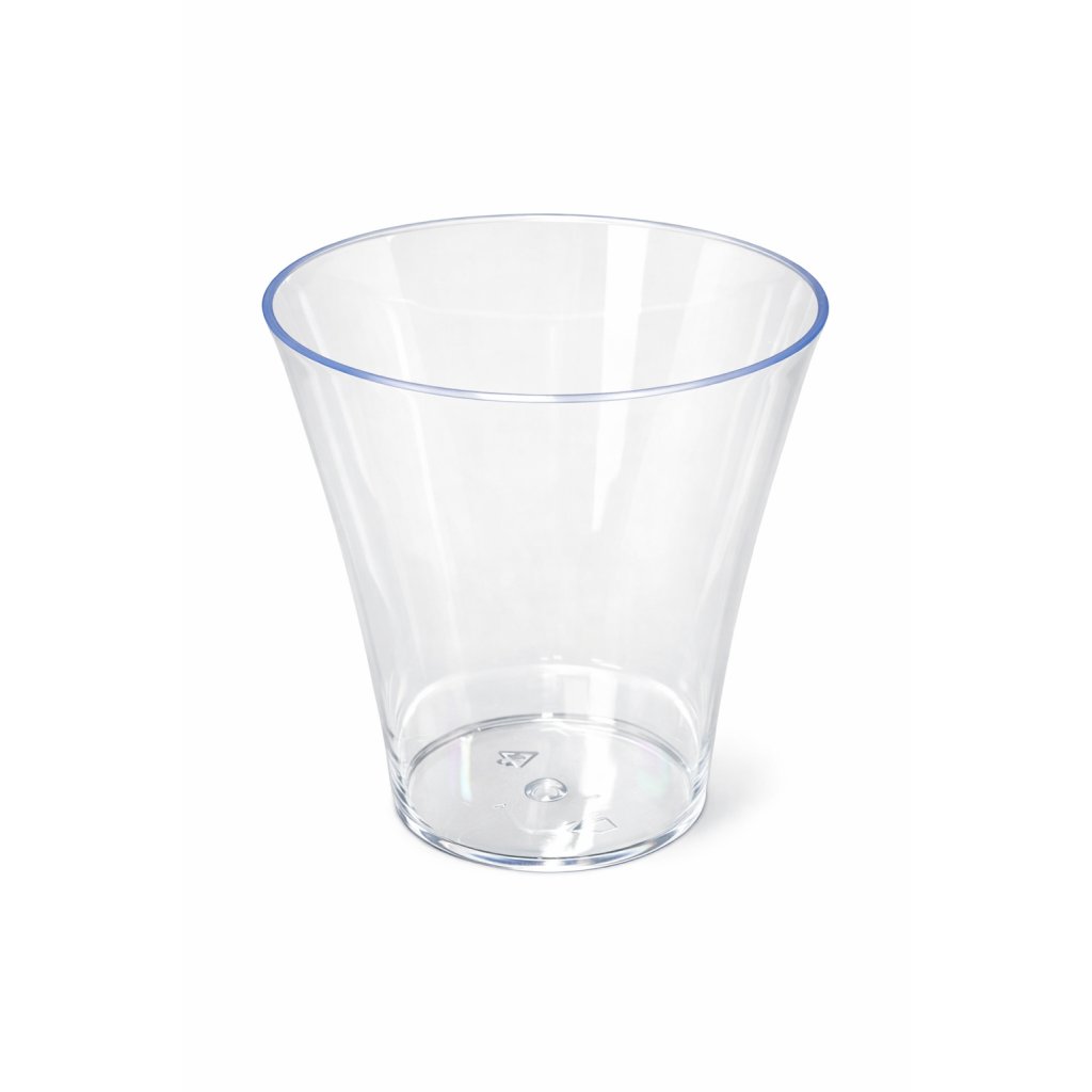 Stylový plastový kelímek určený pro servírování finger food, dezertů, dipů nebo malých předkrmů. Díky svému modernímu designu je ideální pro rauty, cateringové akce, svatby i oslavy. Vyroben z kvalitního, čirého plastu, který působí esteticky a zároveň je pevný a lehký. Kelímek je určen pro jednorázové použití.