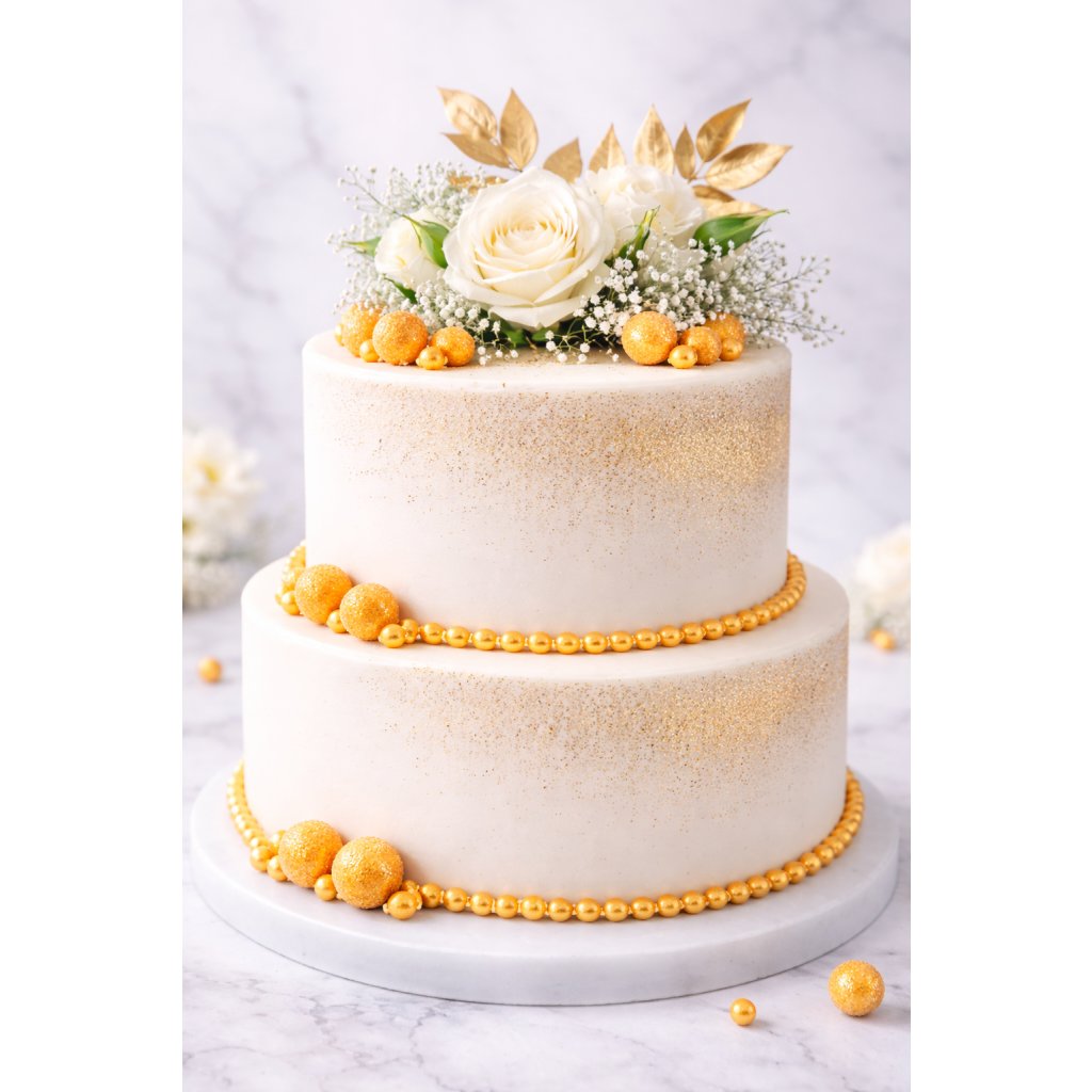 Cukrové perly velké zlaté – elegantní dekorace na dorty, cupcakes, sušenky i jiné dezerty.