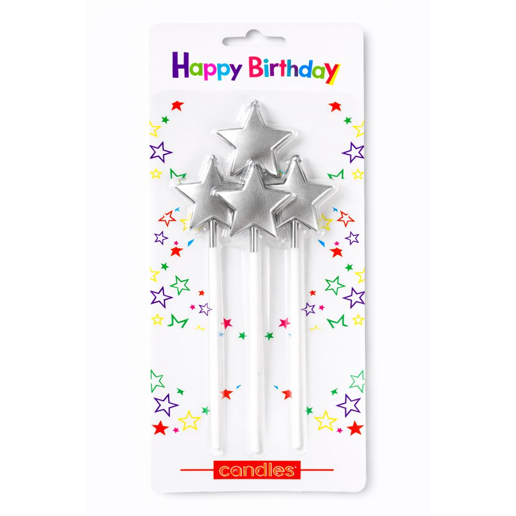 Dortové svíčky ve tvaru hvězd jsou umístěny na zápichu pro jednoduchou instalaci na dort nebo Muffin.