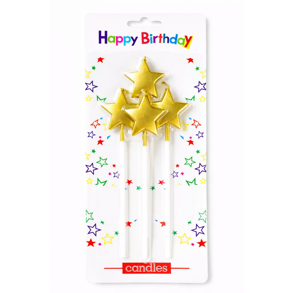 Dortová svíčka hvězda zlatá 4ks