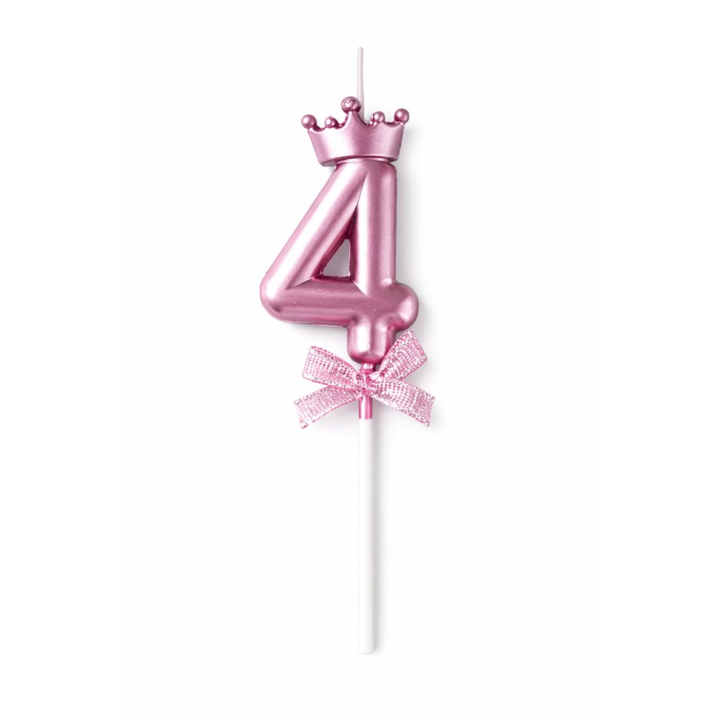 Dortová svíčka s "korunkou" ružovo-zlatá č.4