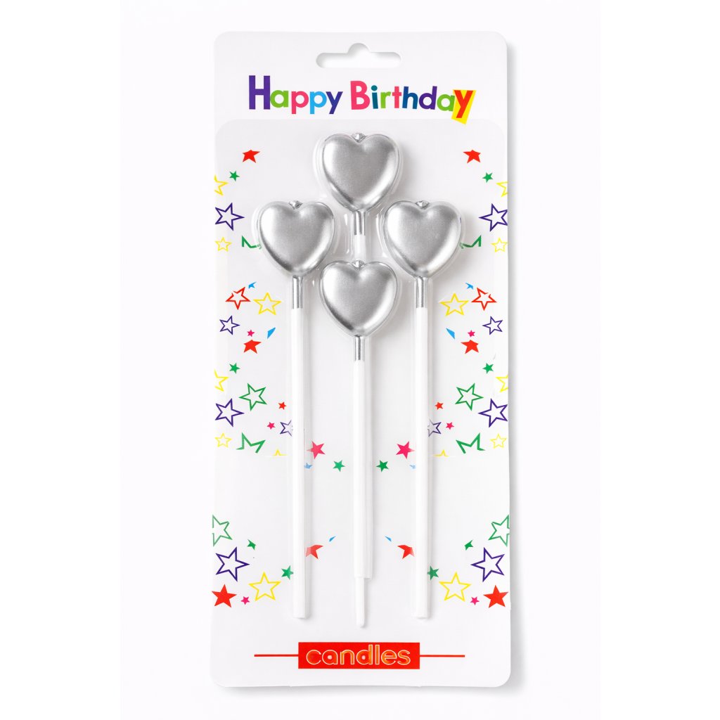 Dortová svíčka srdce stříbrná 4ks