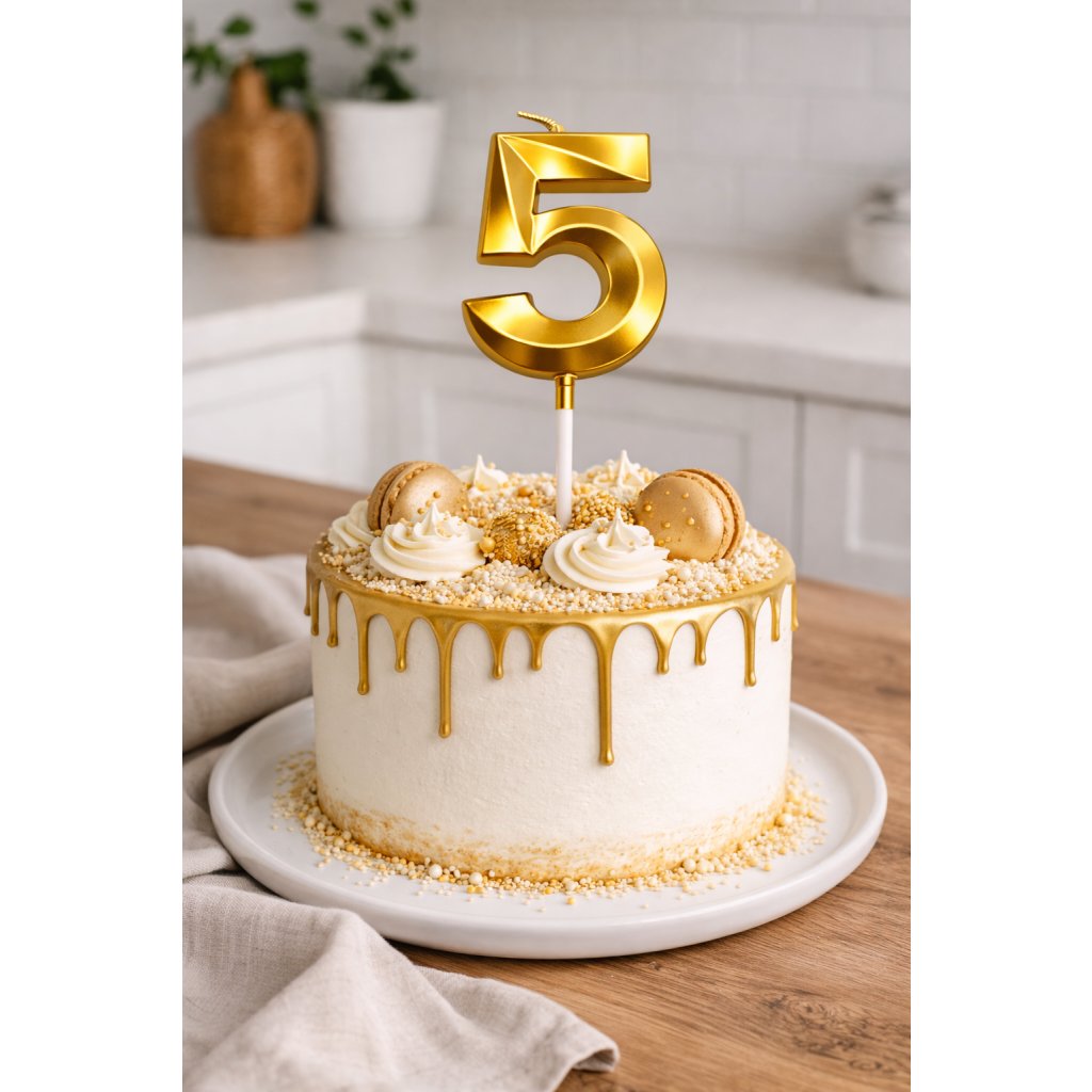 Stylová narozeninová svíčka ve tvaru čísla je perfektní volbou pro každou oslavu. Díky elegantnímu metalickému vzhledu působí na dortu luxusně a krásně doplní narozeninovou i slavnostní výzdobu.