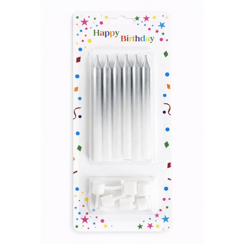 Dortové svíčky HARMONY stříbrno-bílá 6ks