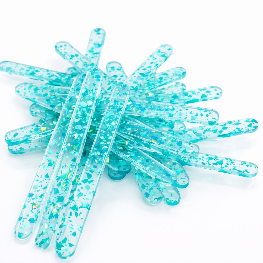 Akrylatové tyčky na nanuk světle modrá s třpytkami délka 11,5cm (10ks)