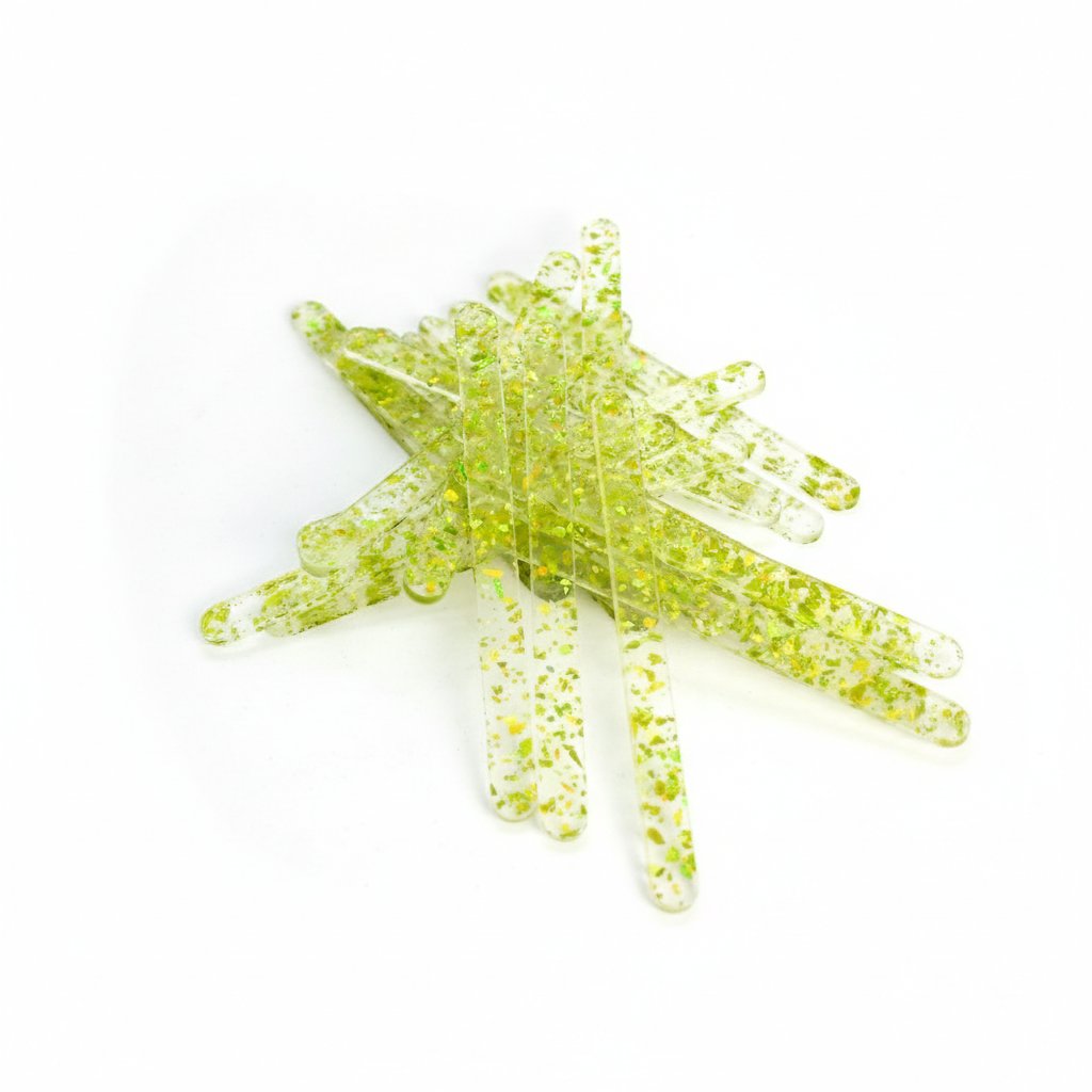Akrylatové tyčky na nanuk zelené 2 s třpytkami délka 11,5cm (10ks)