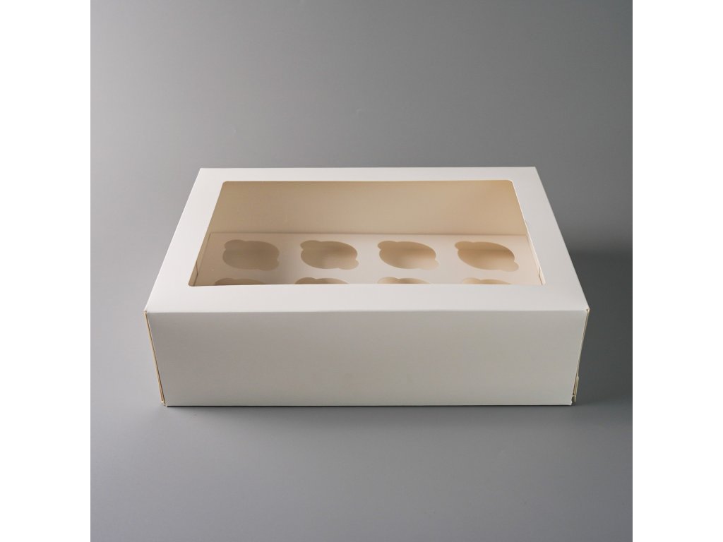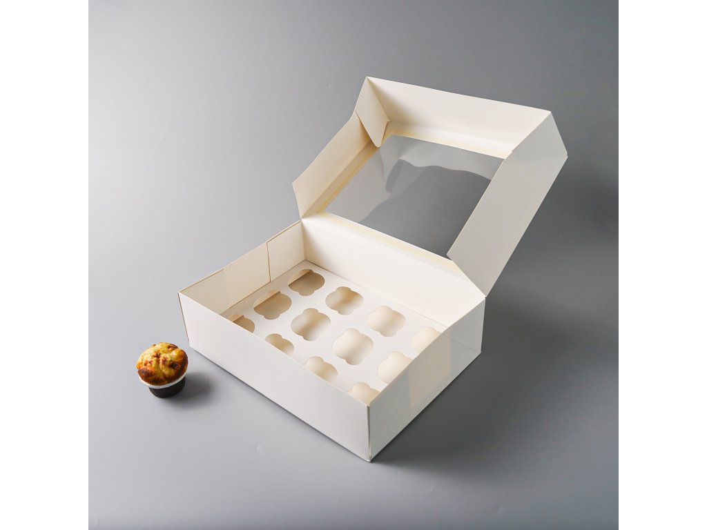 Bílá krabice s průhledným víkem na 12ks muffinů
