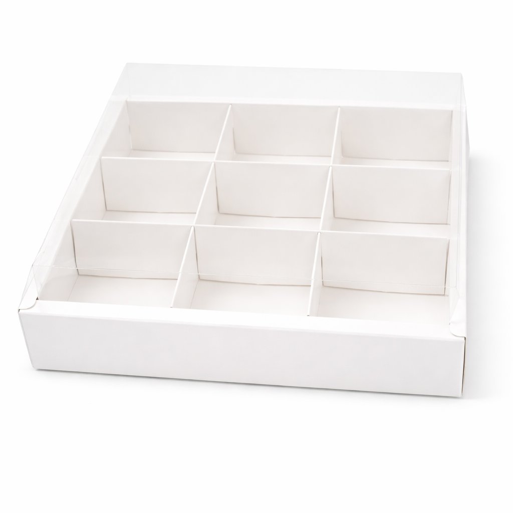 Cukrářská krabice s průhledným víkem a dělící vložkou 35x35x10cm