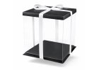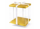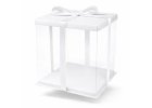 Elegant transparent cake box with white tray and lid.