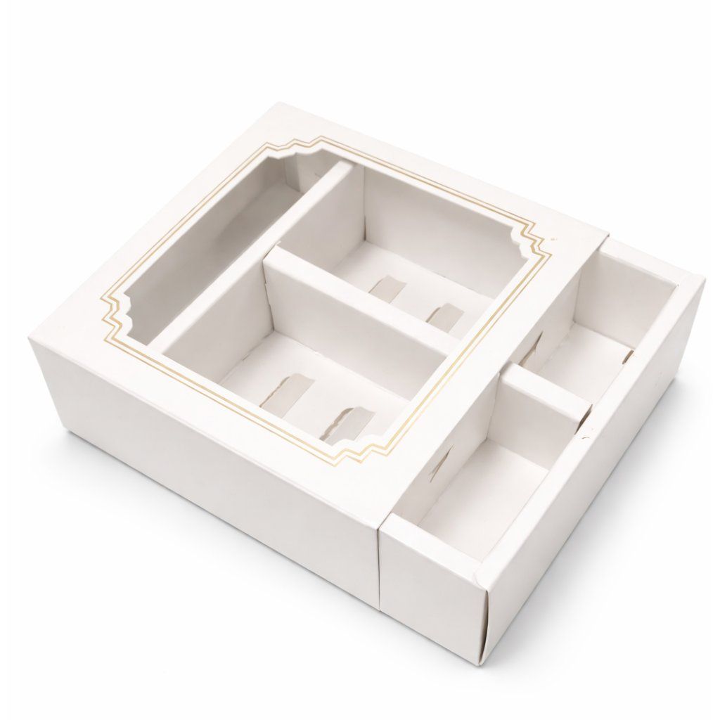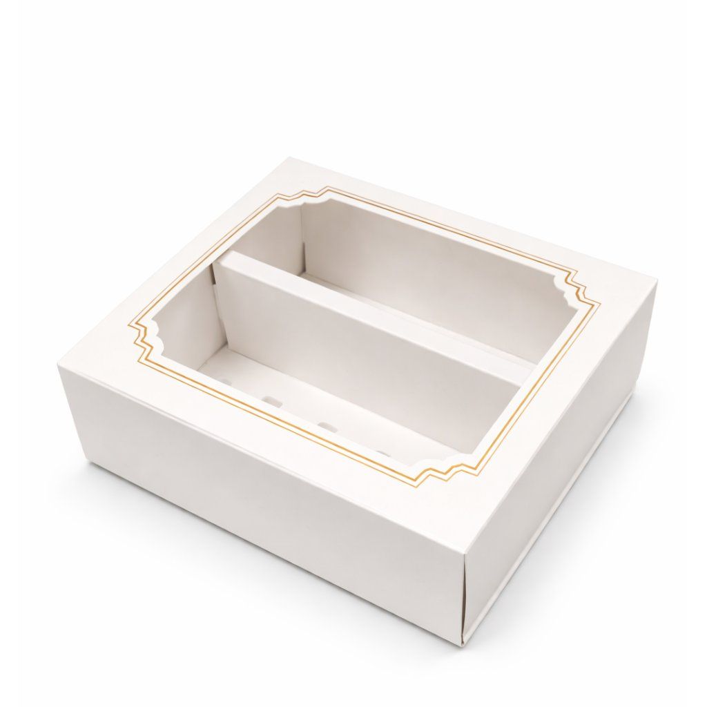 Krabička na makronky bílá se zlatým rámečkem 15,5x12,5x5,2 cm (na 10 kusů)