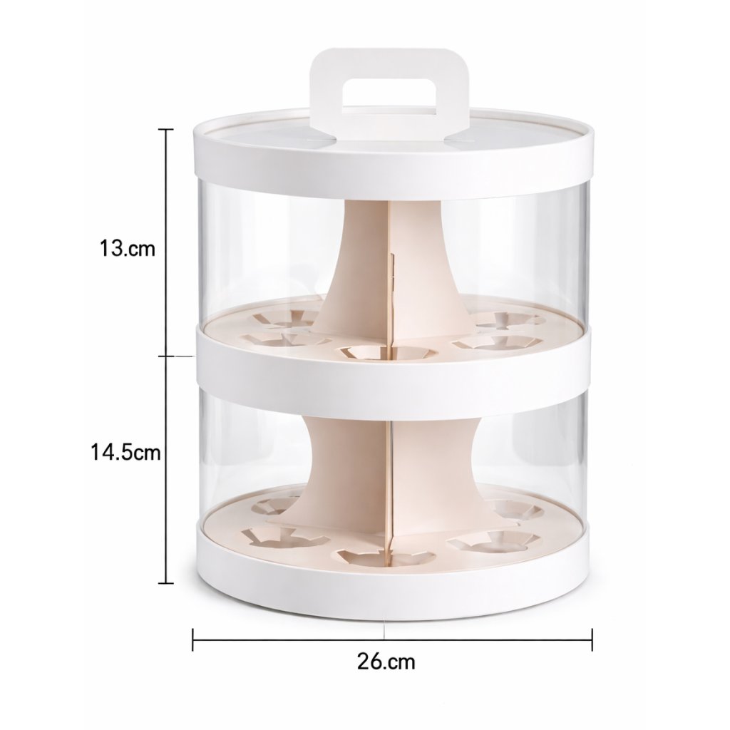 Plastový kulatý box na cupcakes bílý 2 patra s úchytem (na 12ks)