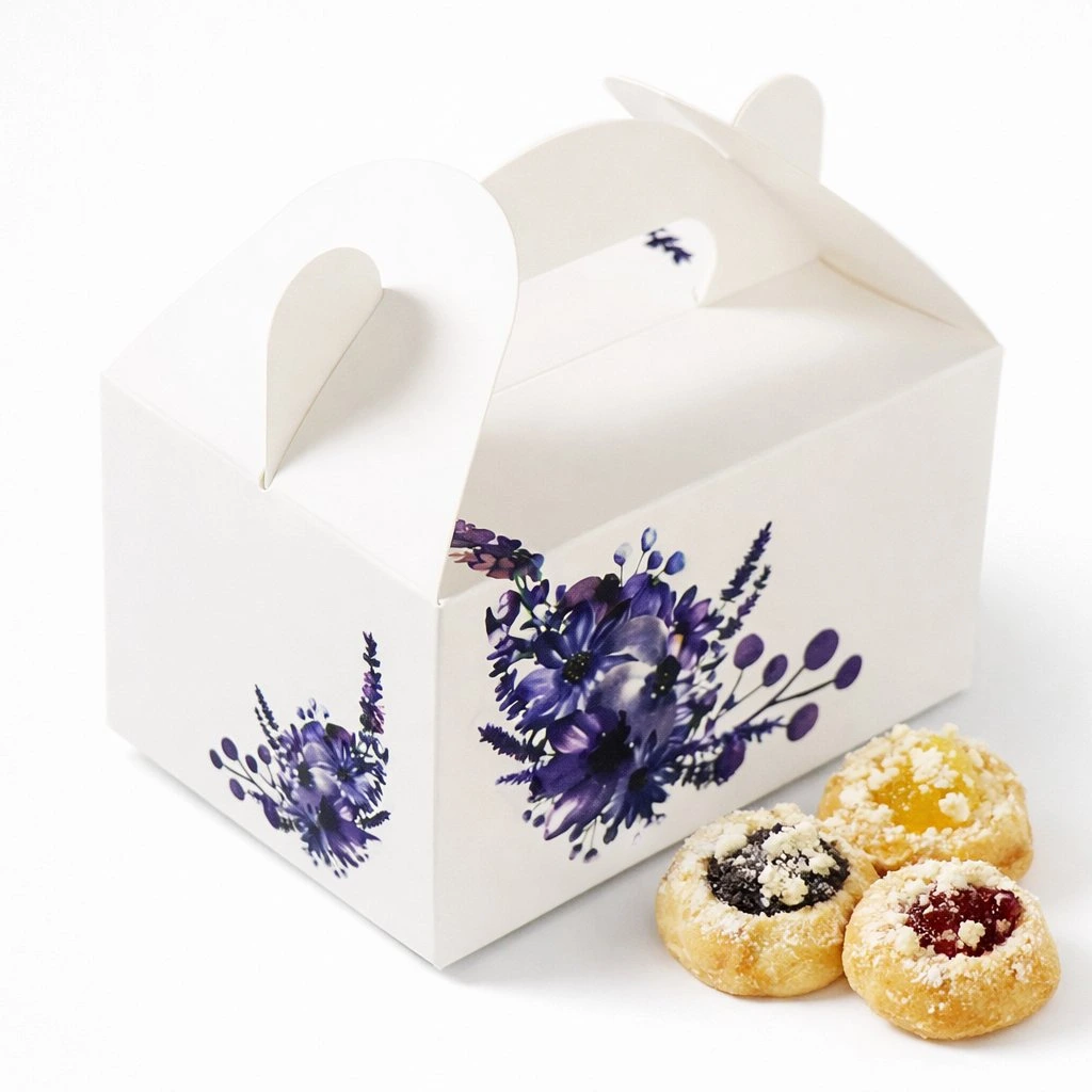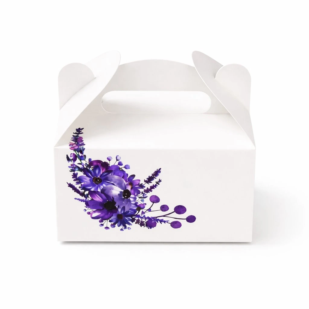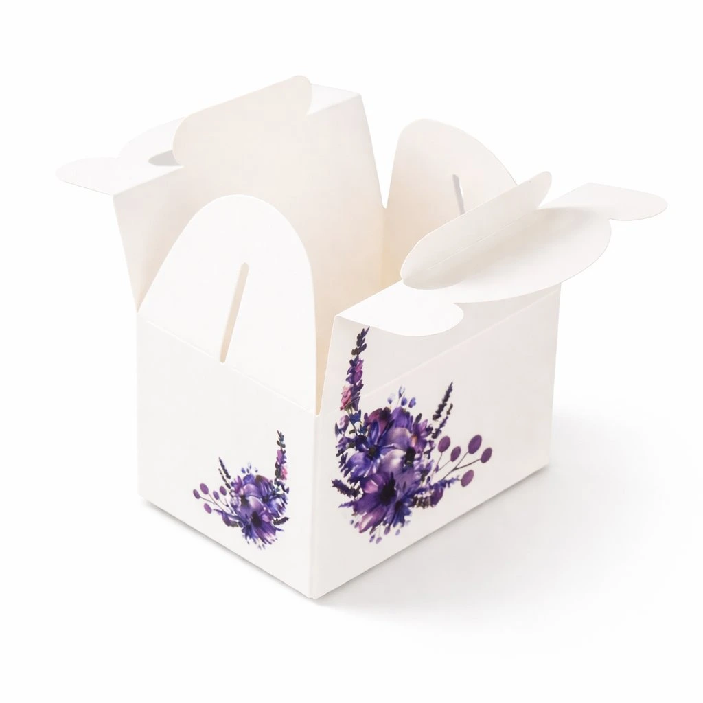 White paper boxes for desserts or wedding favors with a print should definitely not be missing from your celebration.