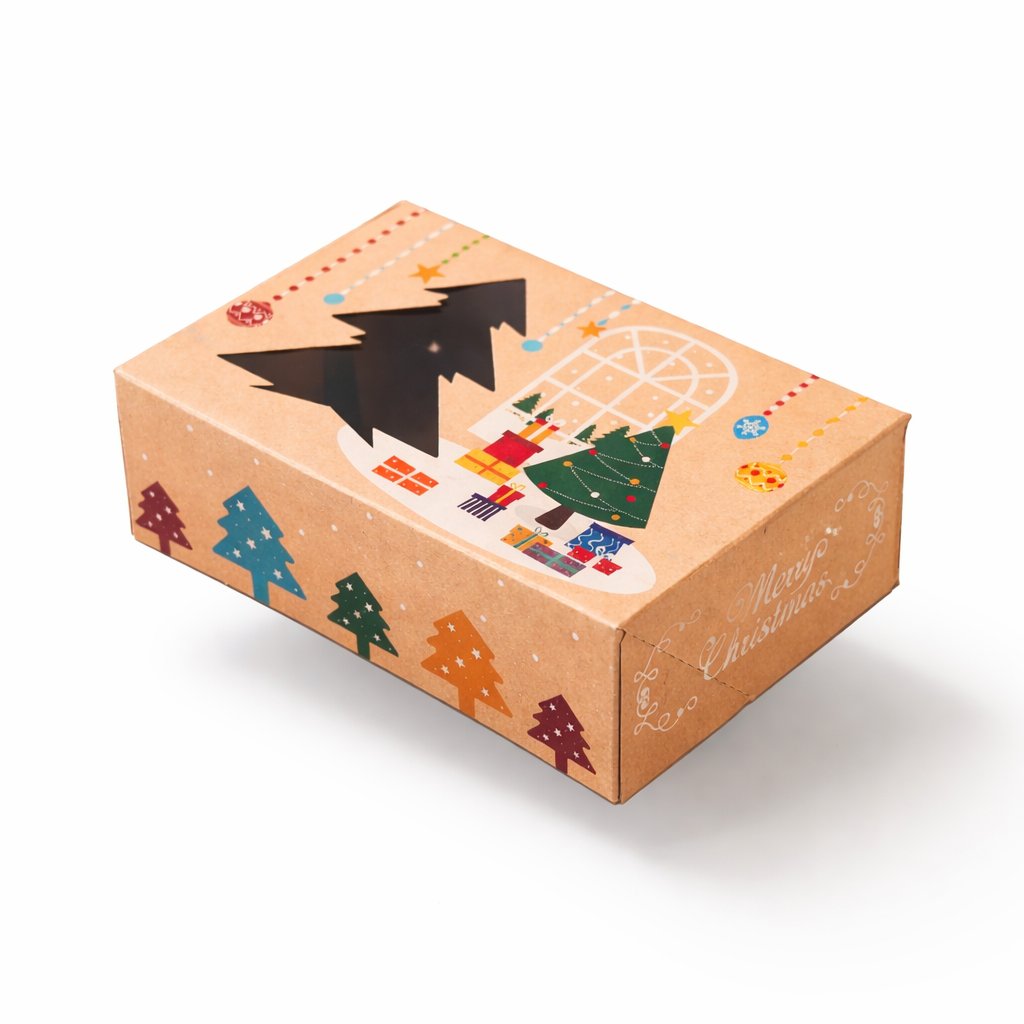 Rozzářete vánoční atmosféru krásným balením pro vaše dobroty! Tato papírová krabice s veselým motivem je ideální pro uložení a dárkové balení vánočního cukroví, perníčků nebo menších sladkostí.